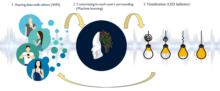 Detect whether the detector board makes a sound similar to the pre-populated sound, and check the size of the surrounding sound together when checking every time.