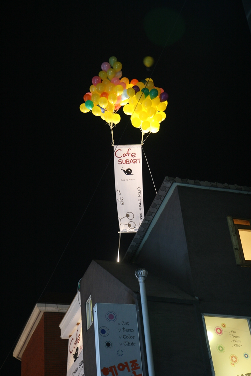 To promote the cafe, we created and distributed drawing books, hosted cafe art fairs, painted and fired cups, and attached promotional materials to helium balloons on the terrace ceiling.
