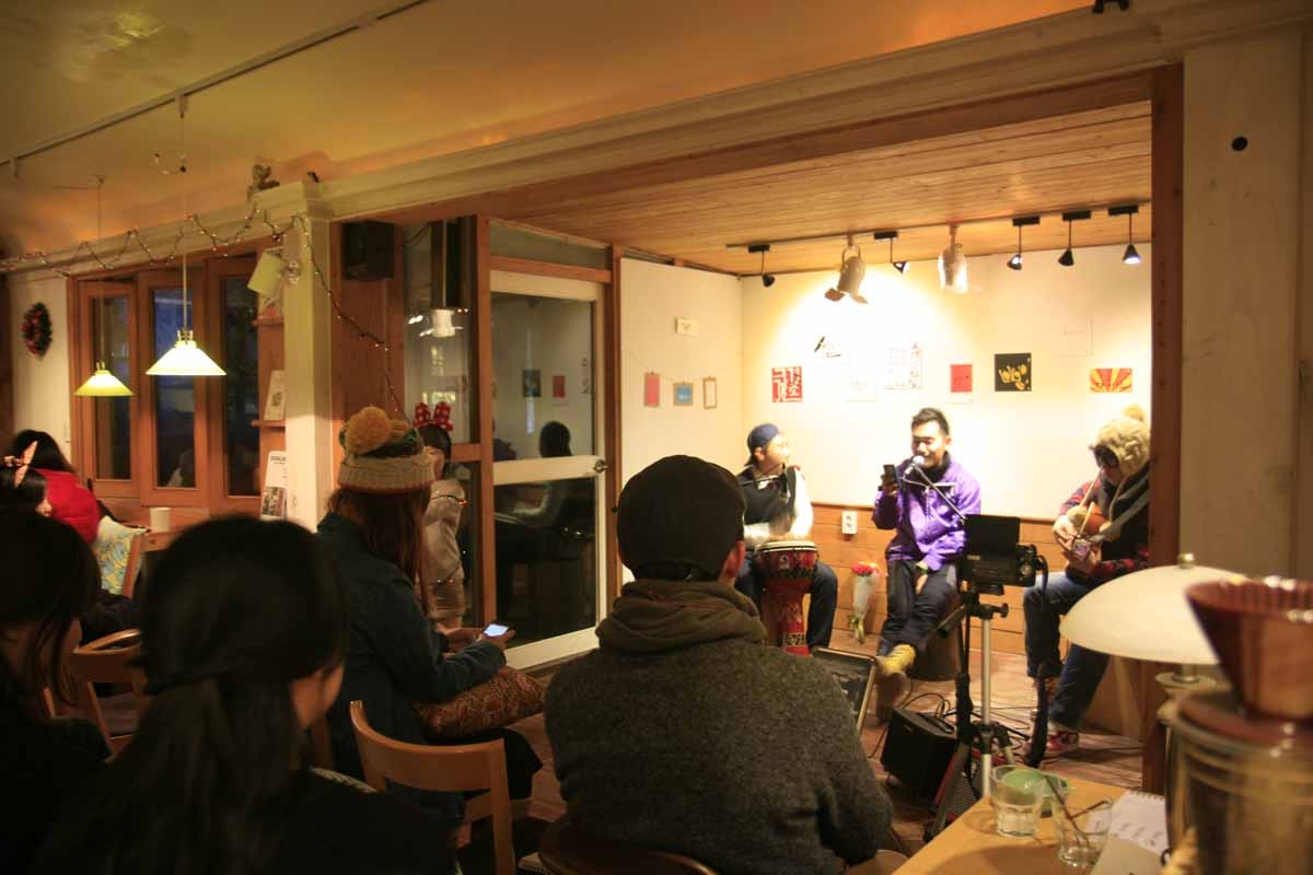 The cafe was equipped with built-in speakers and mobile speakers to provide a stage for artists.